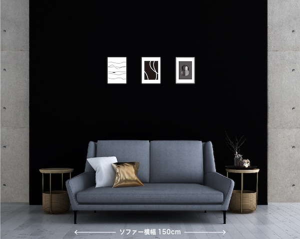 A2サイズのポスター2枚の場合、迫力のあるサイズ感でお部屋の印象をガラッと変えることができます。ソファの後ろに飾るときは2枚並べて飾るのがおすすめ!壁に立てかけてもボリュームの出せるサイズ感です。