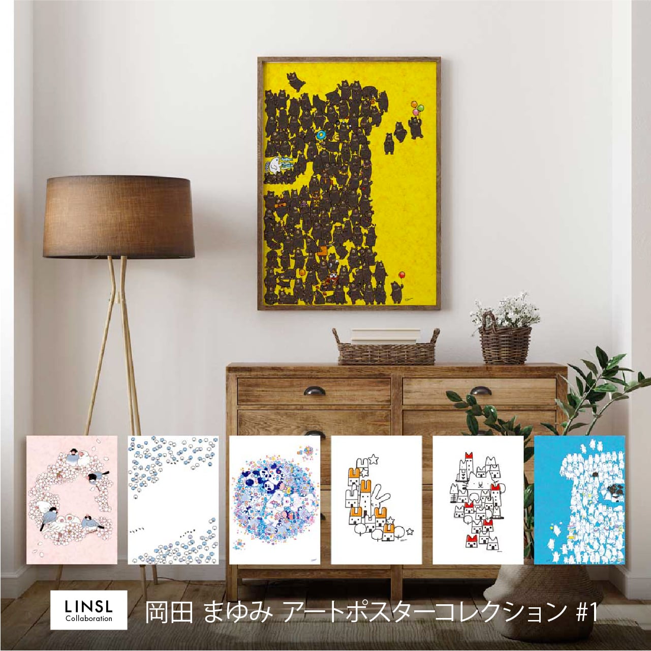 【 岡田 まゆみ × LINSL #1 】可愛い 動物 優しい色彩 アート -LINSL Collaboration- / コラボレーション アートポスター
