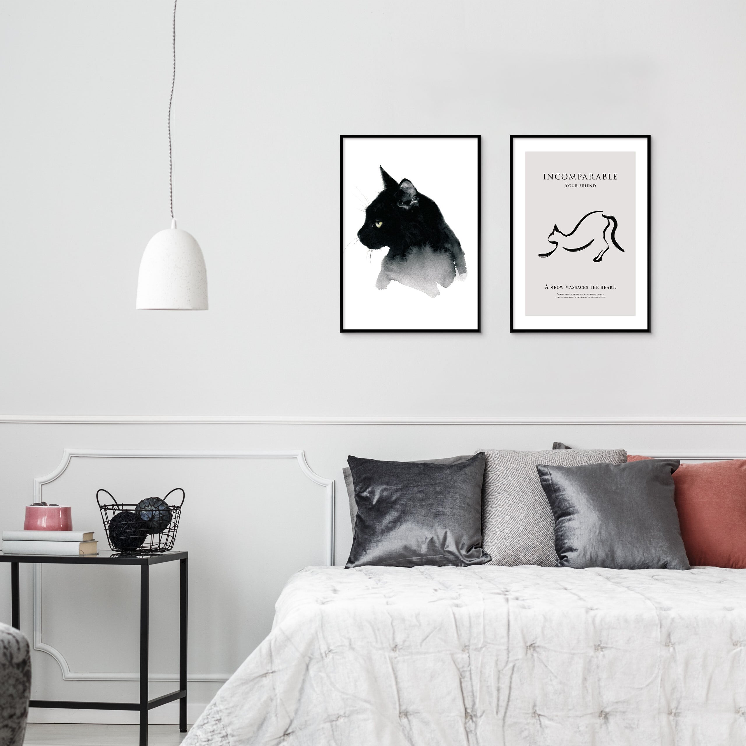 可愛さが先行しがちな猫のモチーフの中で、モダンさが際立つ一枚です。
